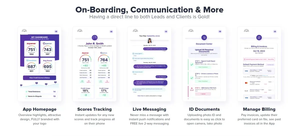 With our powerful SaaS (Software as a Service) solution, we empower you to seamlessly manage your credit repair business operations. From lead generation to marketing campaigns, our comprehensive platform has got you covered. Say goodbye to manual processes and hello to automation.