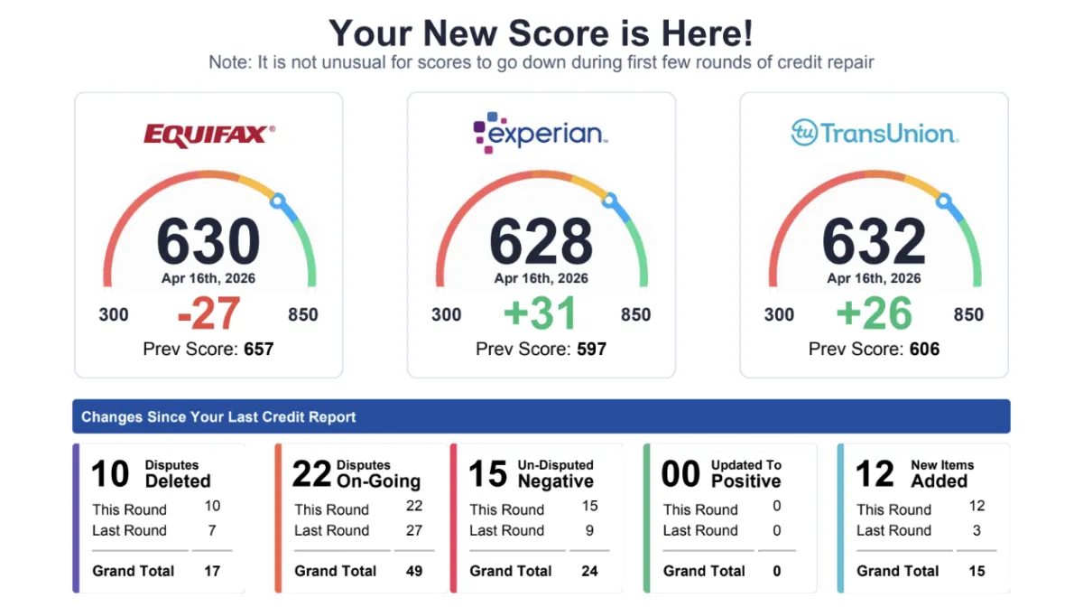 We will update your client’s portal after every round. We will generate letters, print and mail each round when we reimport your client's scores.